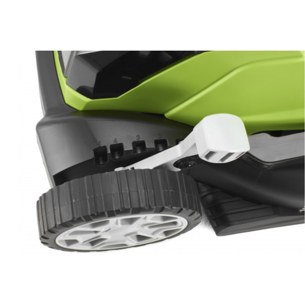 - Система 2-в-1: несмотря на компактные размеры, косилка умеет собирать скошенную траву в прочный тканевый травосборник на 40 литров с металлическим каркасом, а также работать в режиме мульчирования (измельчение травы для подпитки газона).