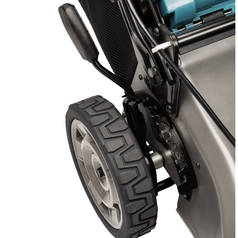 Газонокосилка оснащена бесщеточным двигателем, отличающимся высокой производительностью и длительным сроком службы. Ширина скашивания составляет 46 см, что делает ее подходящей для обработки больших участков за меньшее время. Высота скашивания регулируется централизованно в диапазоне от 20 до 100 мм, всего доступно 10 уровней.