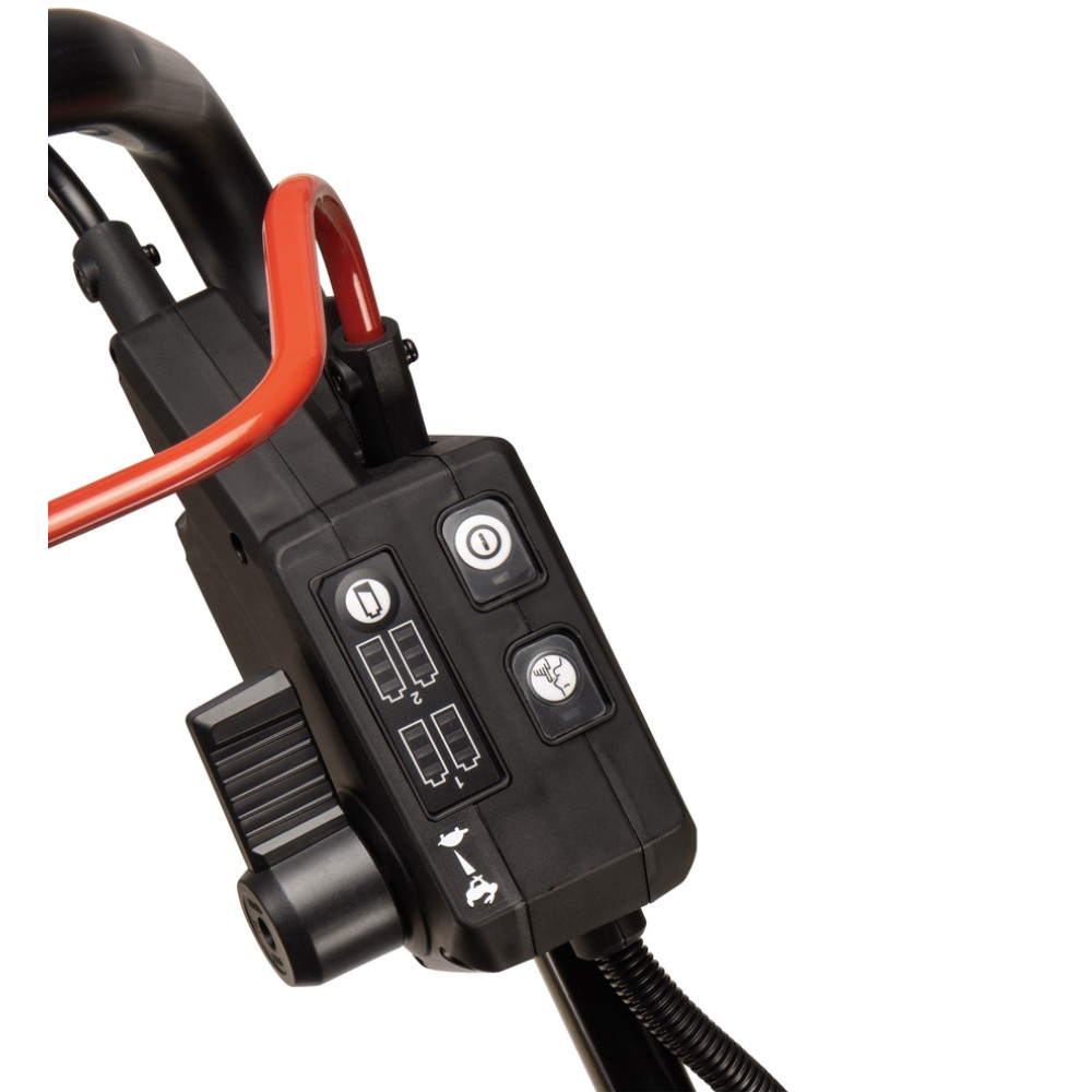 Модель оборудована самоходным приводом с возможностью регулировки скорости, благодаря чему оператору не нужно прилагать усилия при движении — косилка движется сама, подстраиваясь под темп работы.