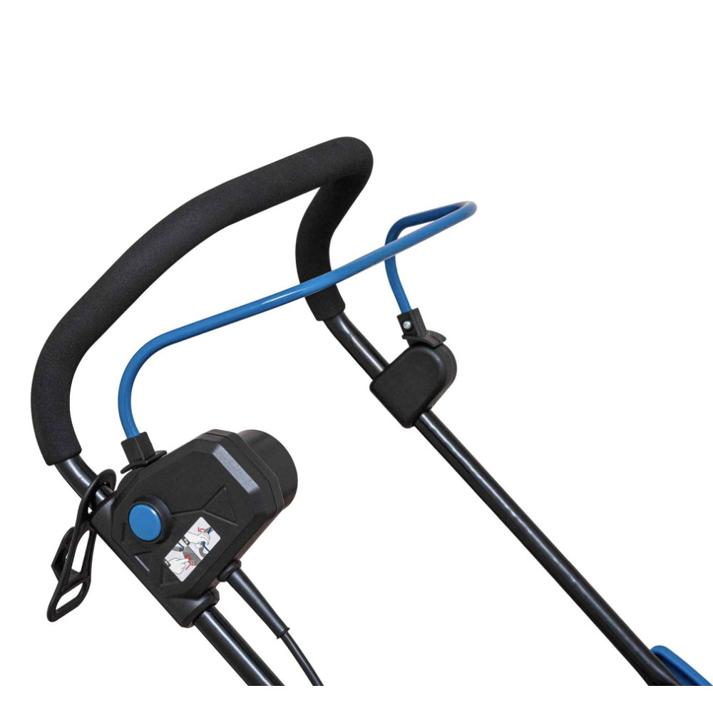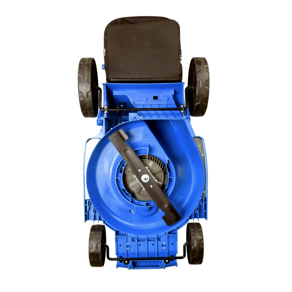 - Система кошения 3-в-1. Модель обладает функционалом премиальных бензиновых машин: сбор в травосборник, задний выброс и мульчирование (заглушка в комплекте) — нож мелко рубит траву, возвращая ее на газон в виде органического удобрения, которое удерживает влагу в почве.