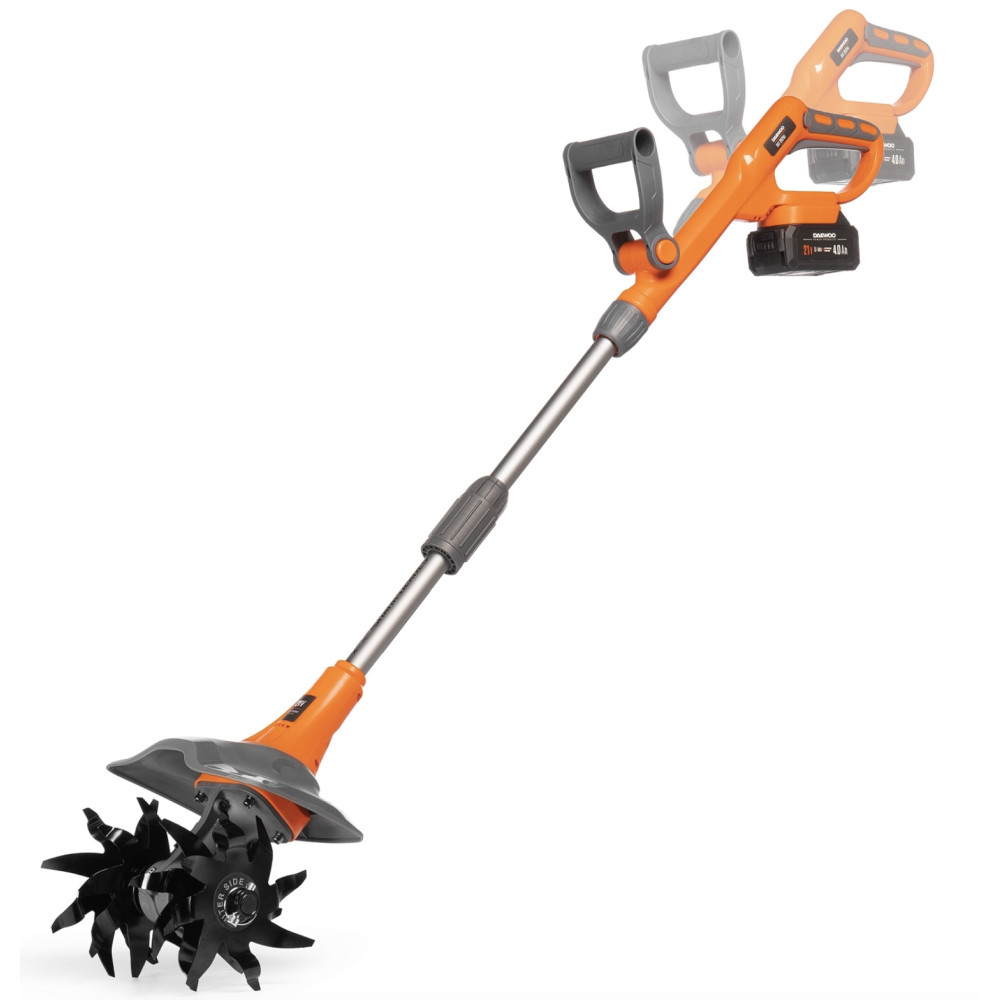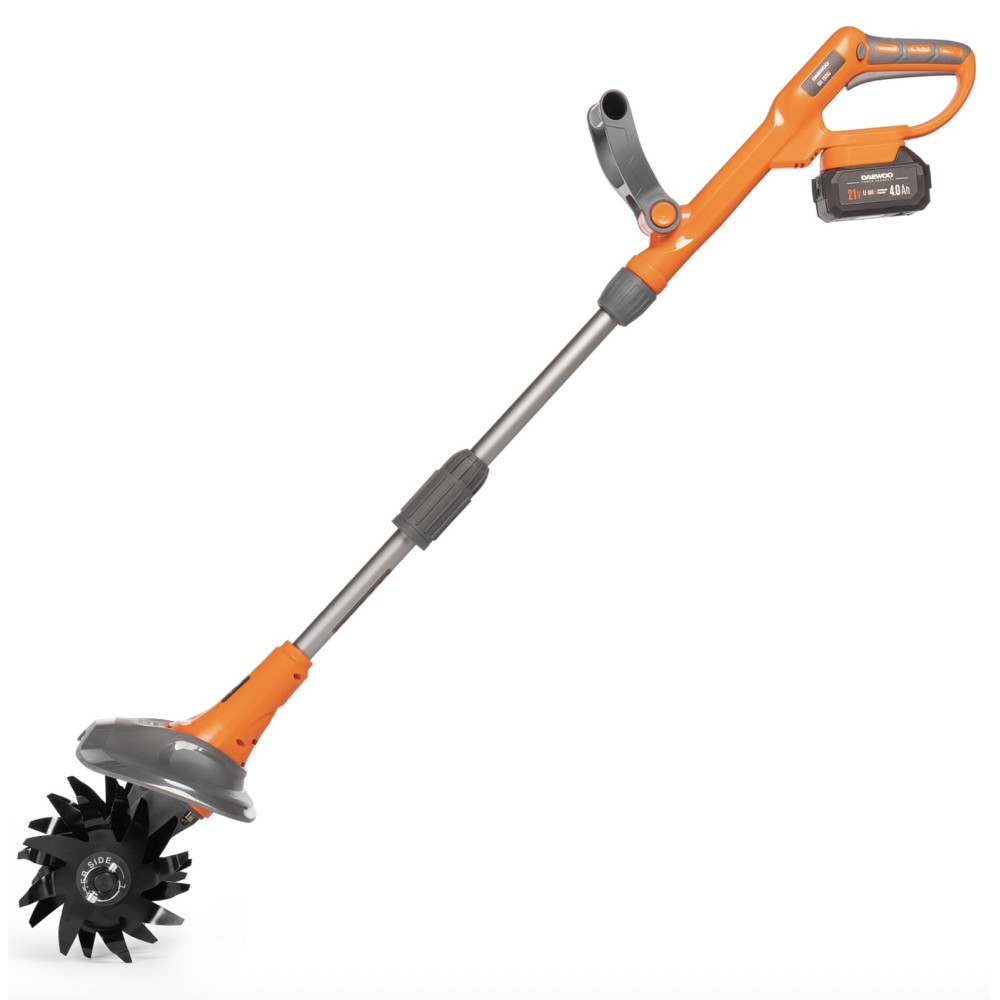 Аккумуляторный культиватор Daewoo DAT 2521Li SET — универсальный инструмент для ухода за почвой, который сочетает мобильность, удобство и эффективную производительность. Он отлично подходит для рыхления земли, подготовки грядок и обработки междурядий на даче или в теплице.