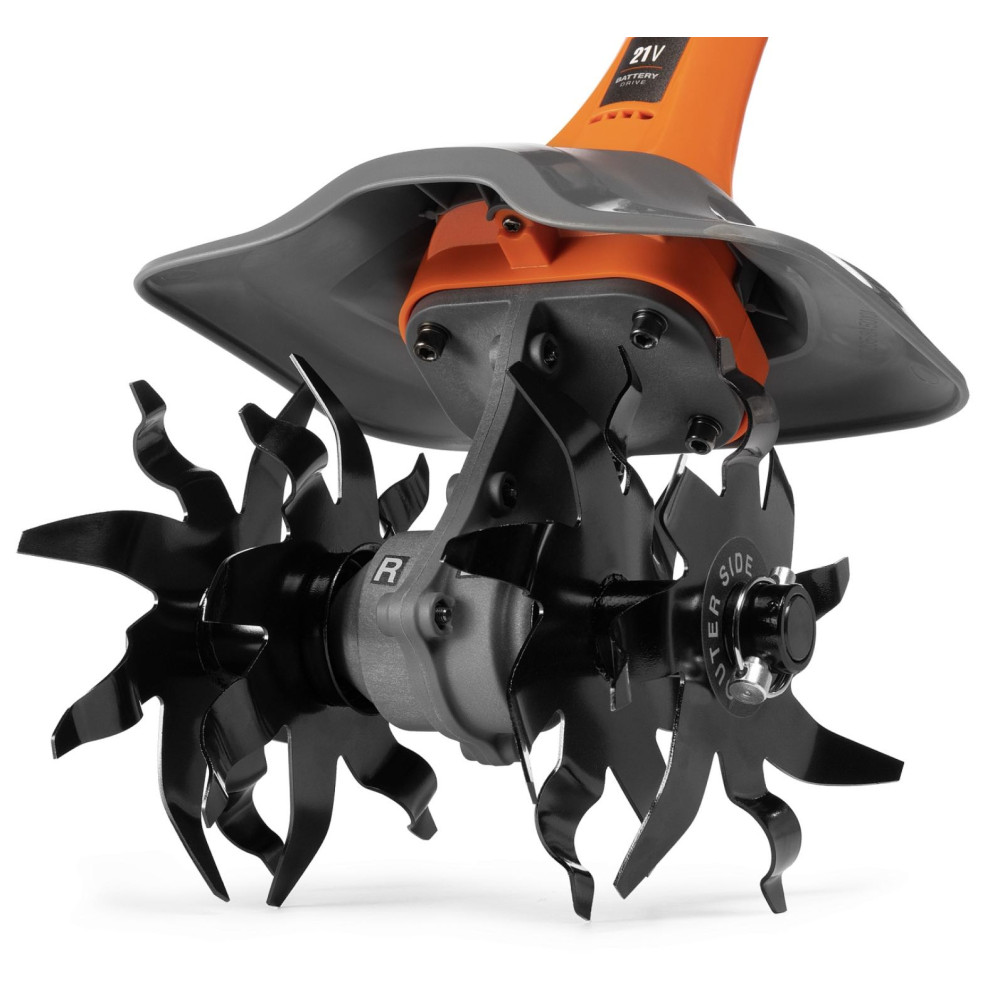 Модель работает от современного Li-Ion аккумулятора, обеспечивая полную свободу передвижения без проводов и необходимости использовать топливо. Благодаря увеличенной мощности по сравнению с базовыми моделями, культиватор уверенно справляется даже с более плотной почвой, облегчая подготовку участка к посадке.
