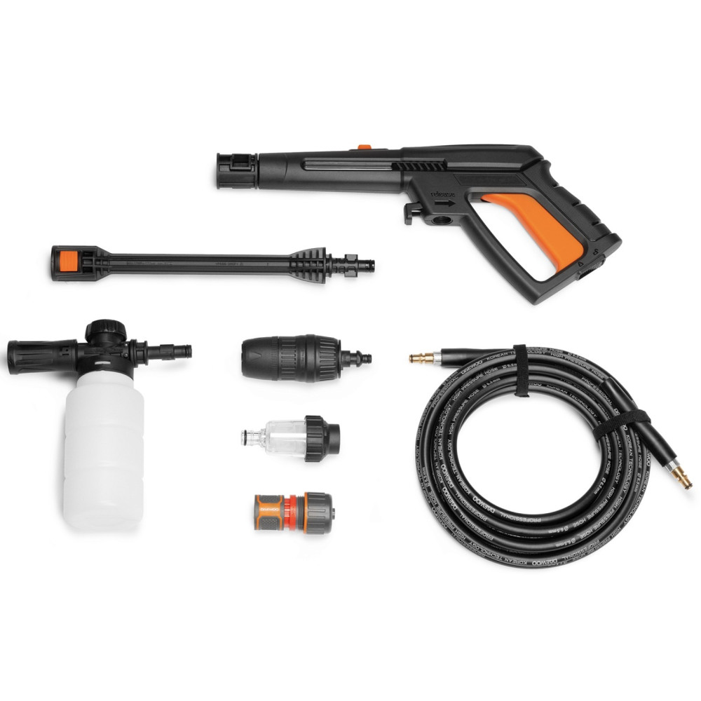 - Писотлет с системой Quick Connect. Шланг и насадки подключаются к пистолету за одну секунду с помощью надежных быстросъемных соединений. Никаких резьбовых закручиваний и гаечных ключей!
