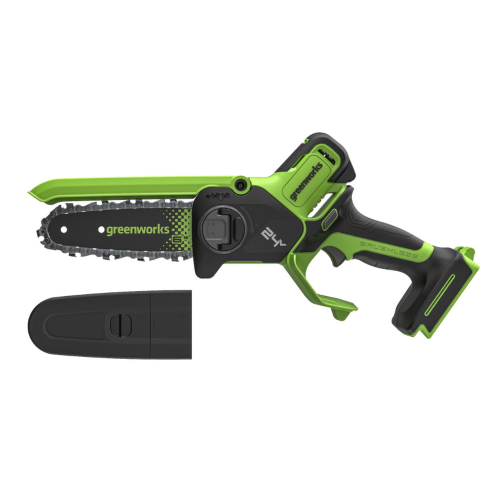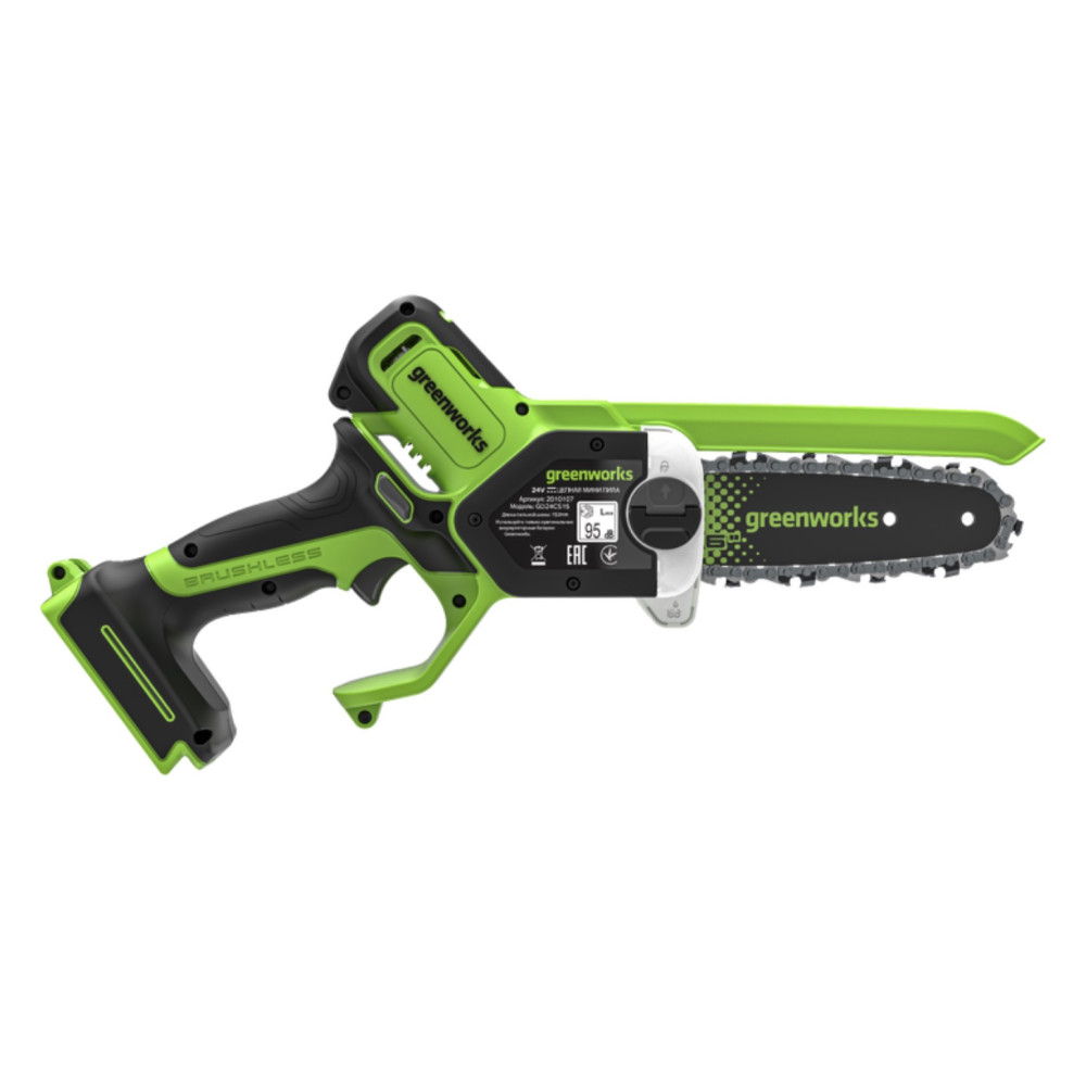 Аккумуляторная цепная мини-пила Greenworks GD24CS15 24В (без АКБ и ЗУ) — компактный и производительный инструмент для обрезки веток, распила древесины, ухода за садом и выполнения хозяйственных работ на участке. Модель работает от аккумуляторной платформы 24В, обеспечивая полную мобильность, отсутствие проводов и экологичную эксплуатацию.