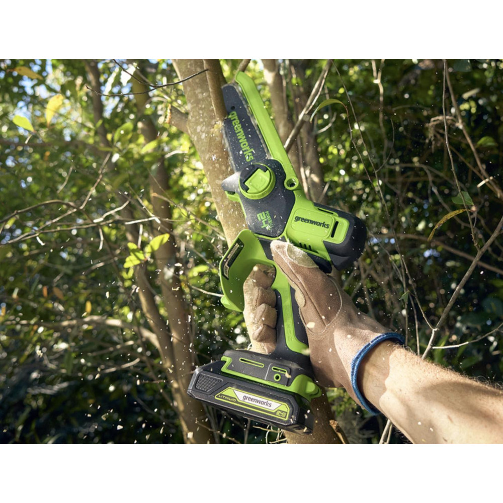 Аккумуляторная мини-пила Greenworks GD24CS15 — отличный выбор для пользователей, которые уже используют технику платформы 24 В и ищут легкий, надежный и эффективный инструмент для ежедневных садовых задач.